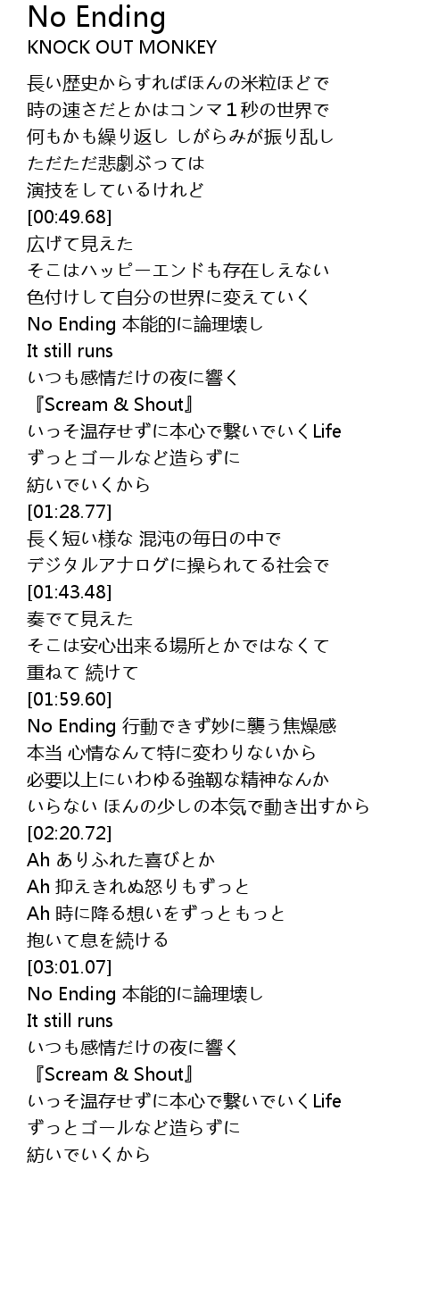 | [02:00.13] | No Ending 行動できず妙に襲う焦燥感 |