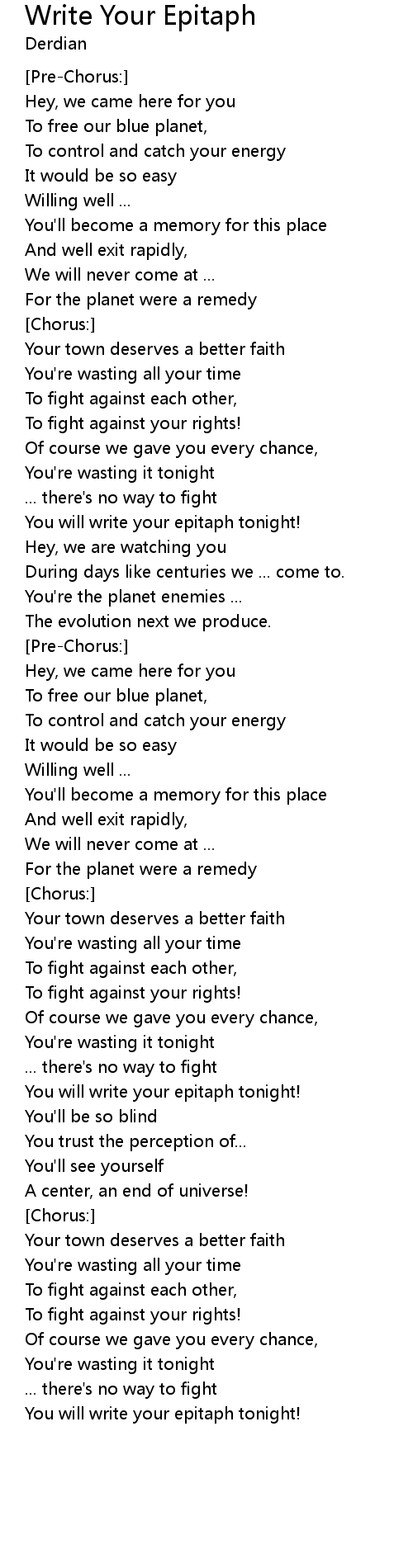 You will write your epitaph tonight! |