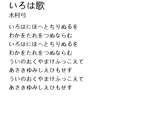 | [00:07.00] | いろはにほへとちりぬるを |