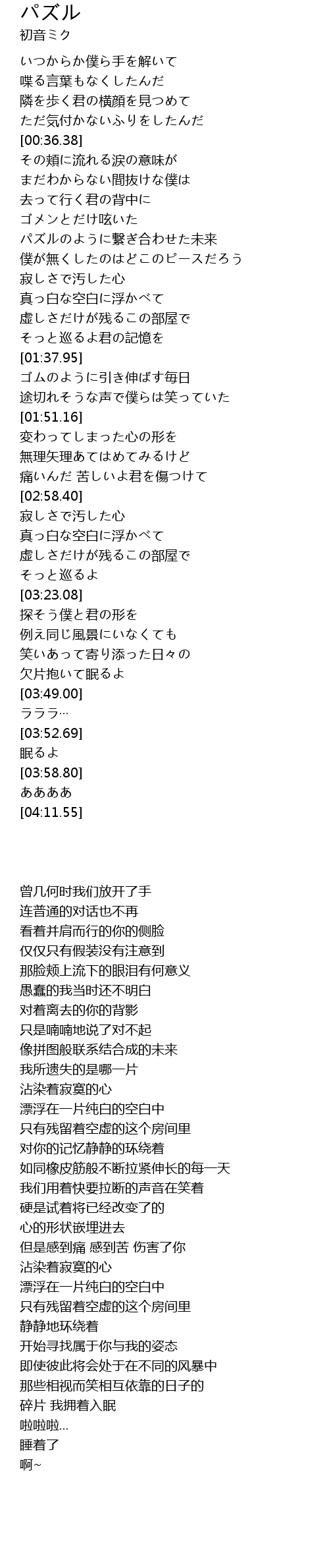 | [00:58.78] | パズルのように繋ぎ合わせた未来 |