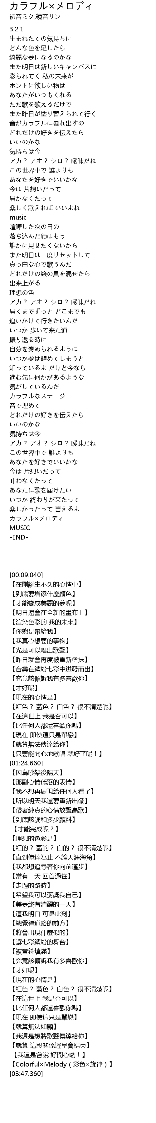 | [03:45.270] | カラフル×メロディ |