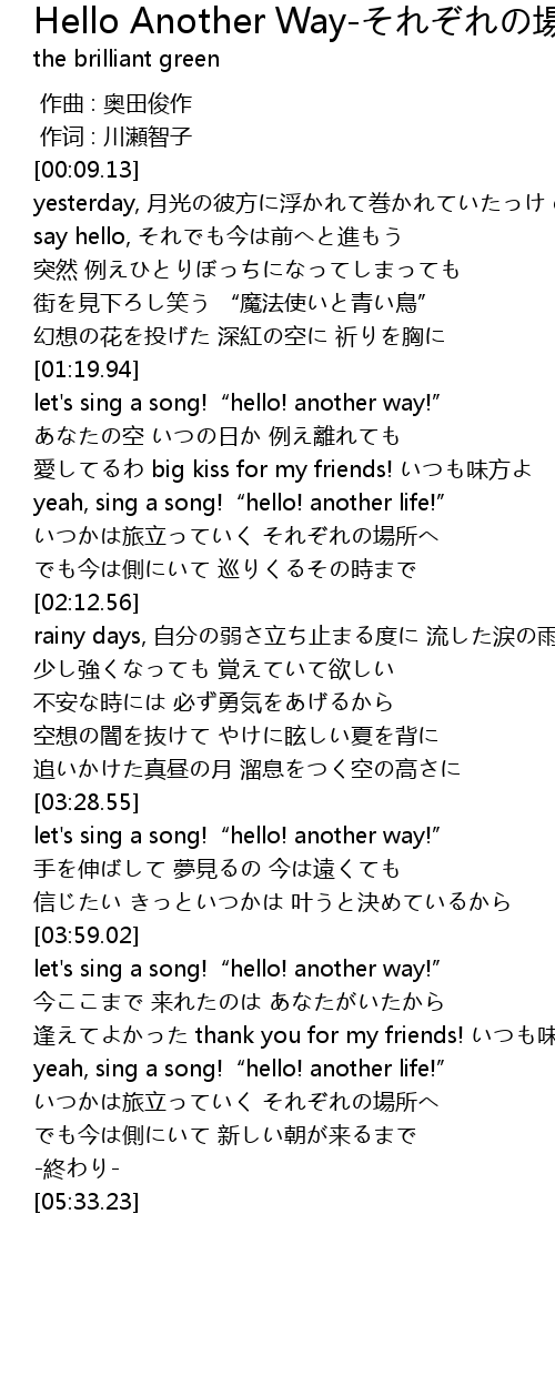 | [03:29.27] | let's sing a song!“hello! another way!” |