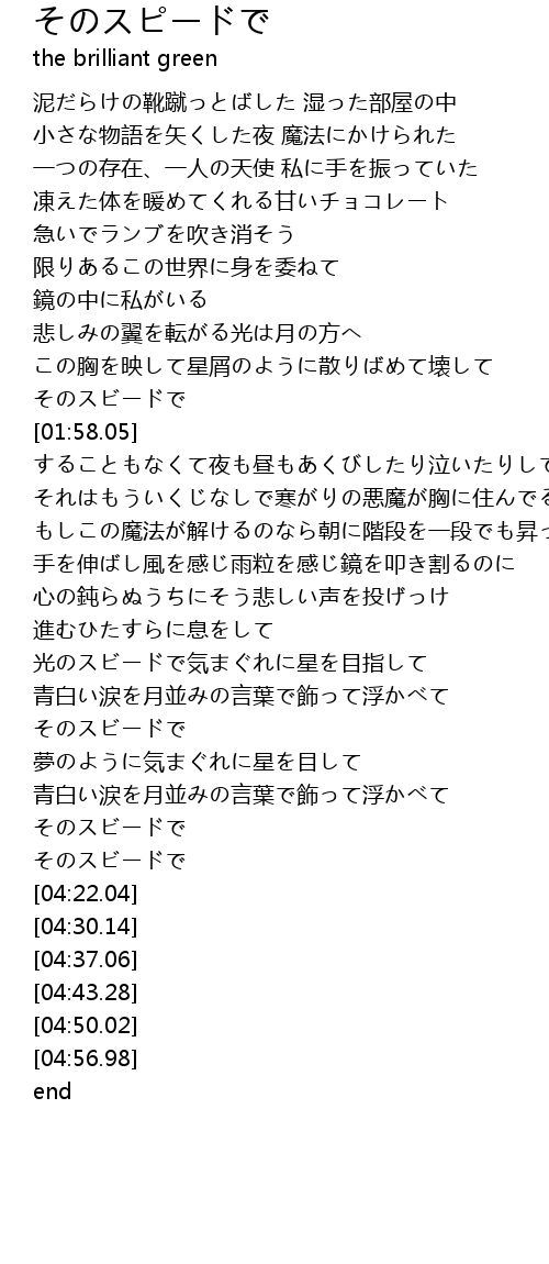 | [03:20.39] | 光のスビードで気まぐれに星を目指して |