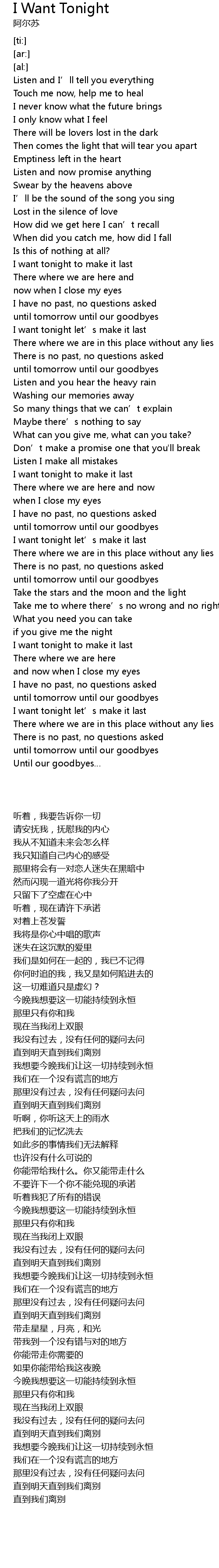 | [03:20.91] | I want tonight let’s make it last |
