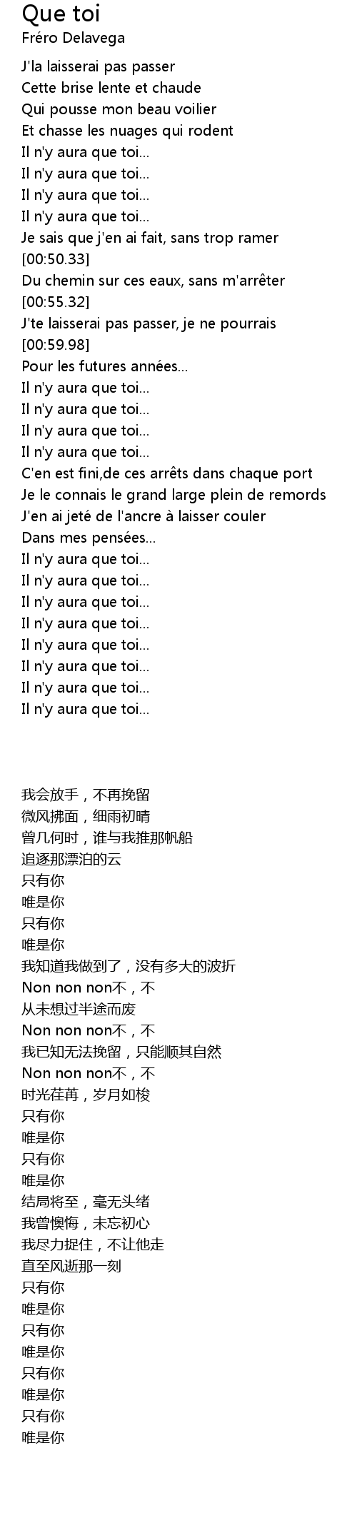 | [00:56.50] | J' te laisserai pas passer, je ne pourrais |