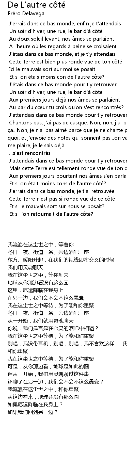 | [00:34.000] | J'errais dans ce bas monde, enfin je t'attendais |