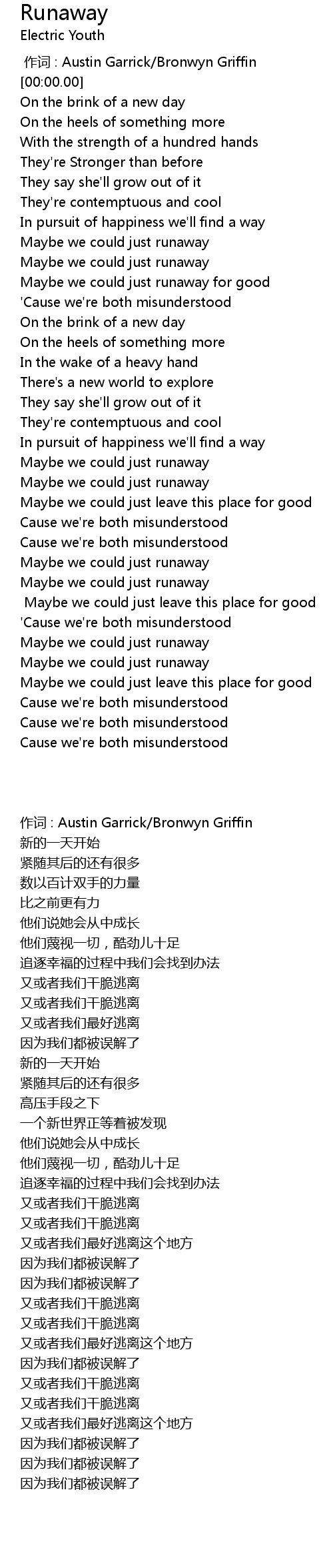 | [00:00.00] | 作词 : Austin Garrick/Bronwyn Griffin |