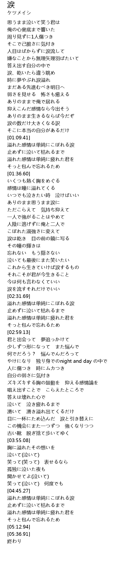 | [01:54.40] | ありのまま思うまま涙に |