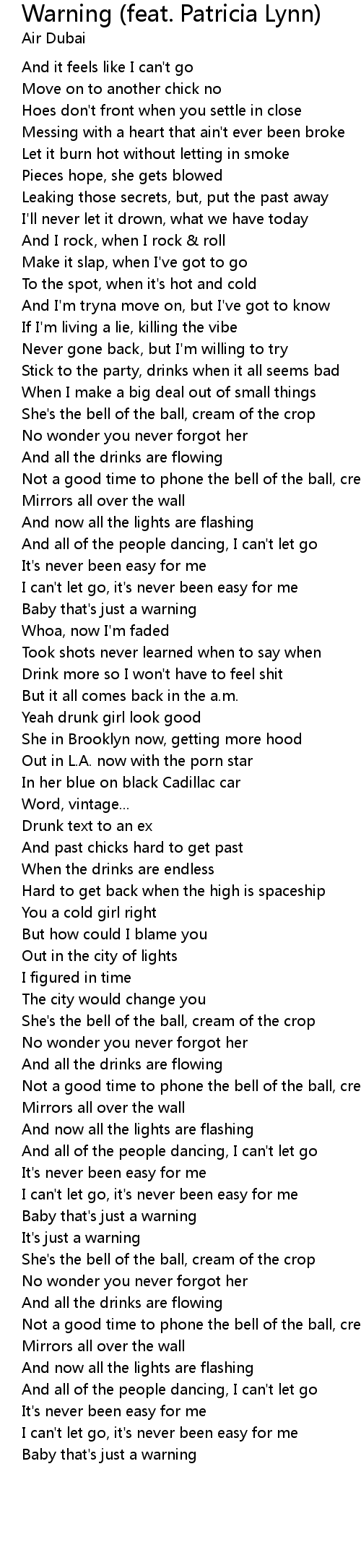 | [01:13.88] | Baby that's just a warning |