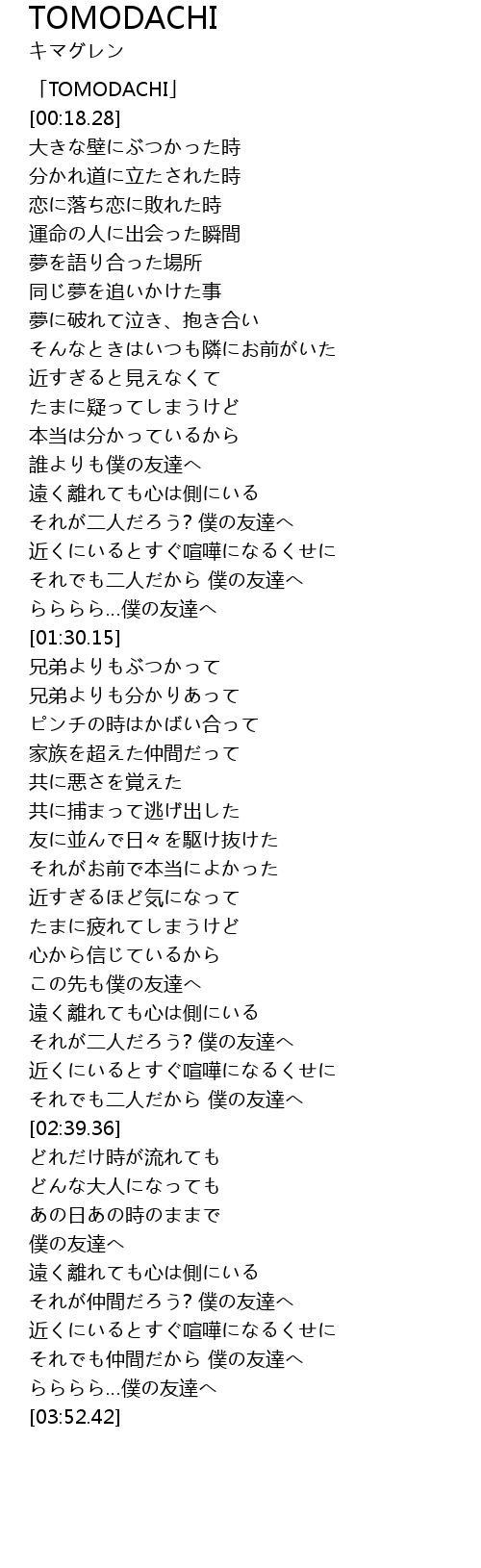 | [03:38.56] | らららら…僕の友達へ |