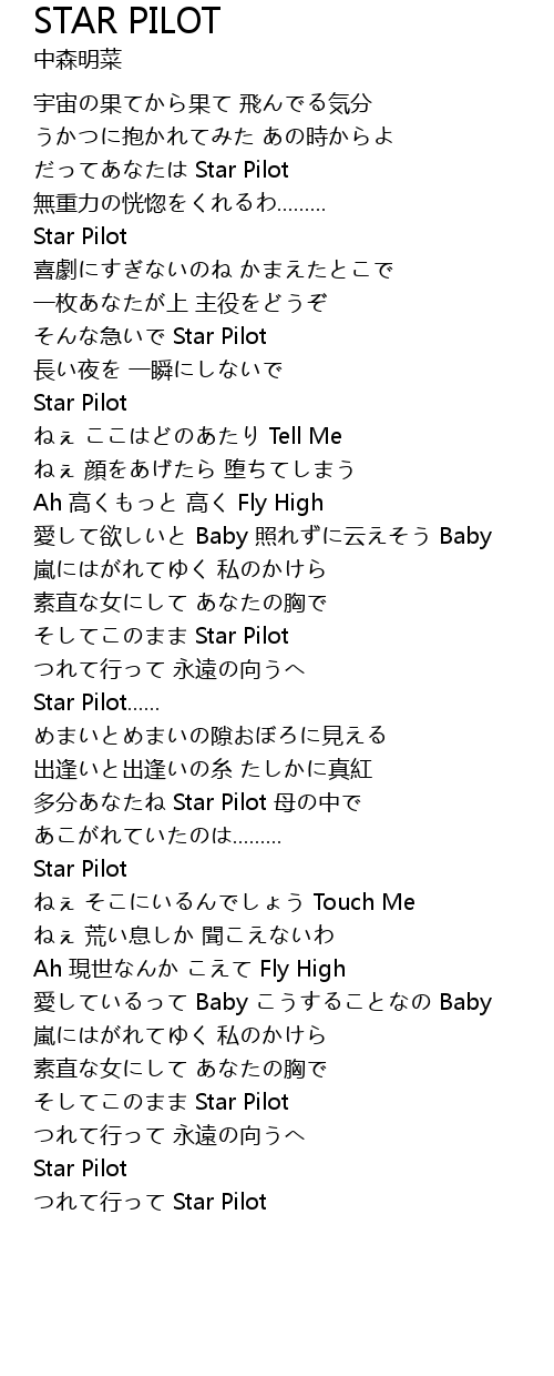 | [02:27.40] | 多分あなたね Star Pilot 母の中で |