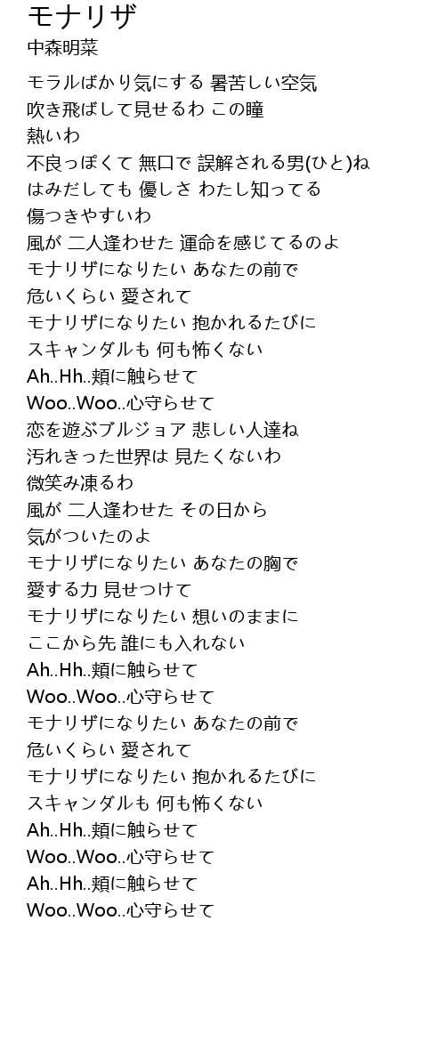 | [03:22.57] | モナリザになりたい あなたの前で |