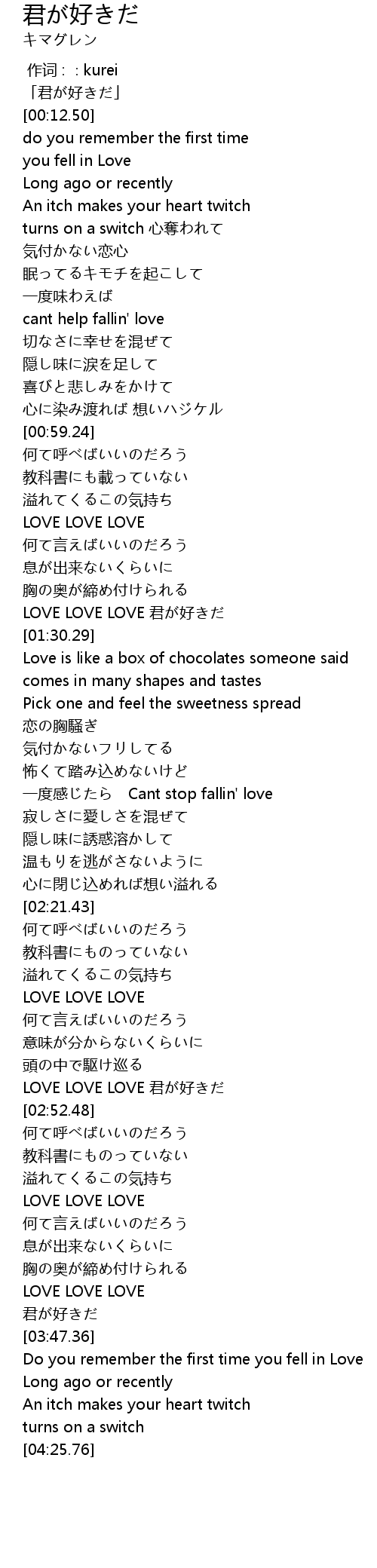 | [01:25.67] | LOVE LOVE LOVE 君が好きだ |