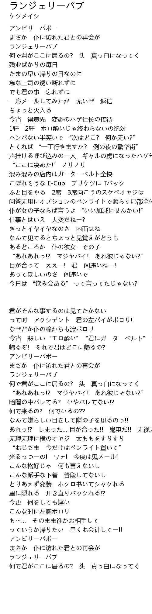 | 今宵 悲しい“モロ酔い”“君にガーターベルト” さ | |