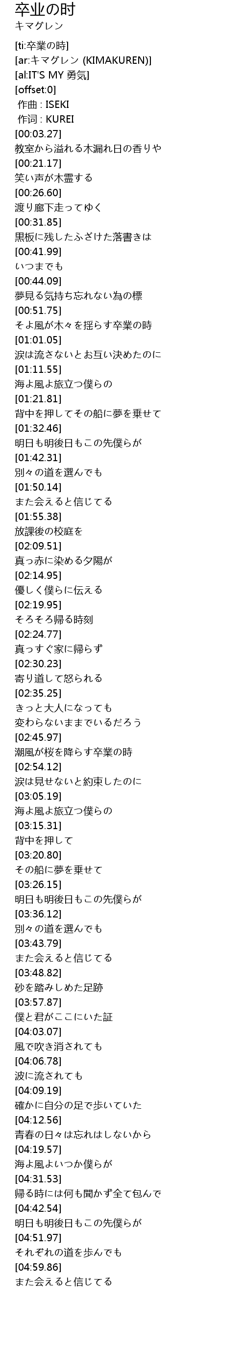 | [ti:卒業の時] | |