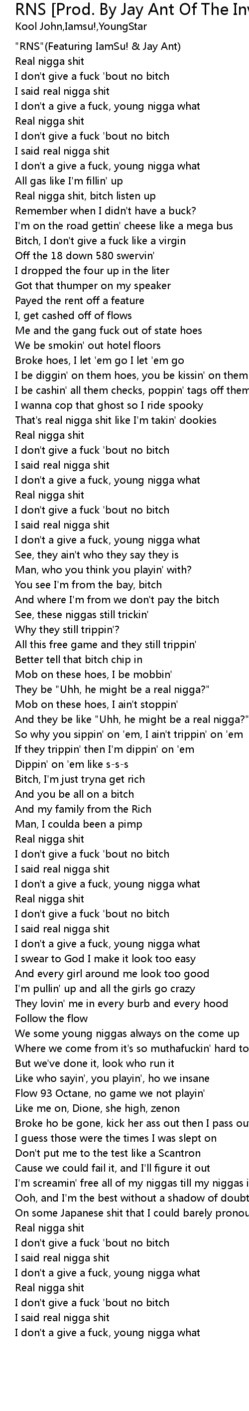 | [01:35.19] | I don't give a fuck 'bout no bitch |