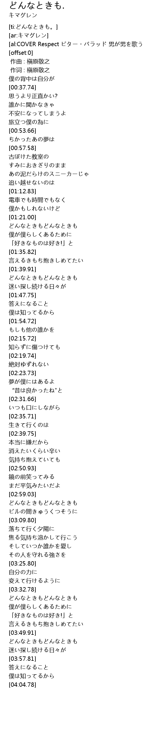 | [03:34.56] | どんなときもどんなときも |
