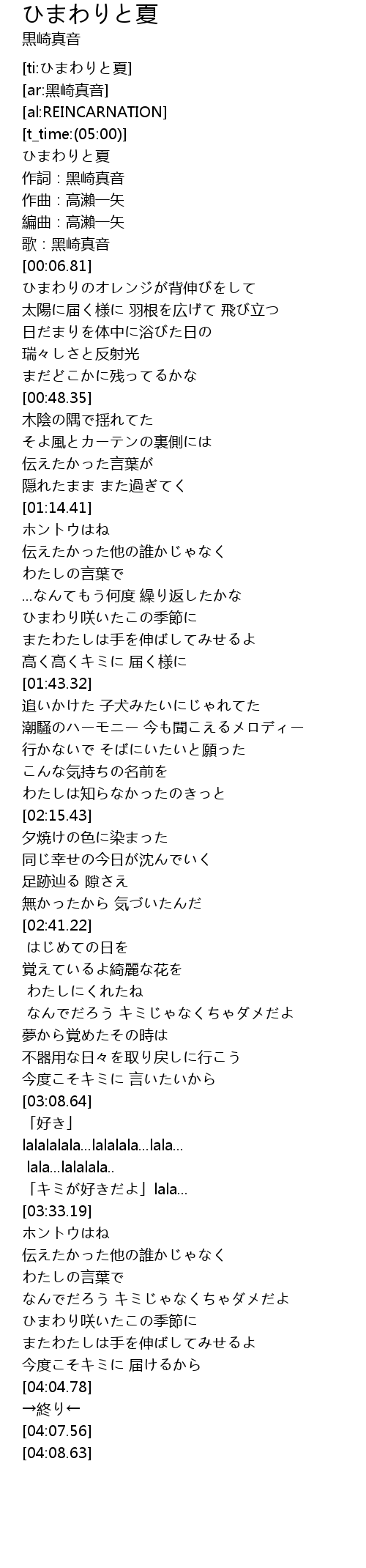| [00:00.31] | ひまわりと夏 |