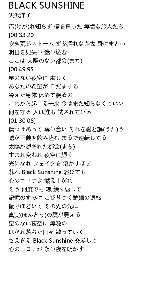 | [03:07.42] | さえぎる Black Sunshine 交差して |