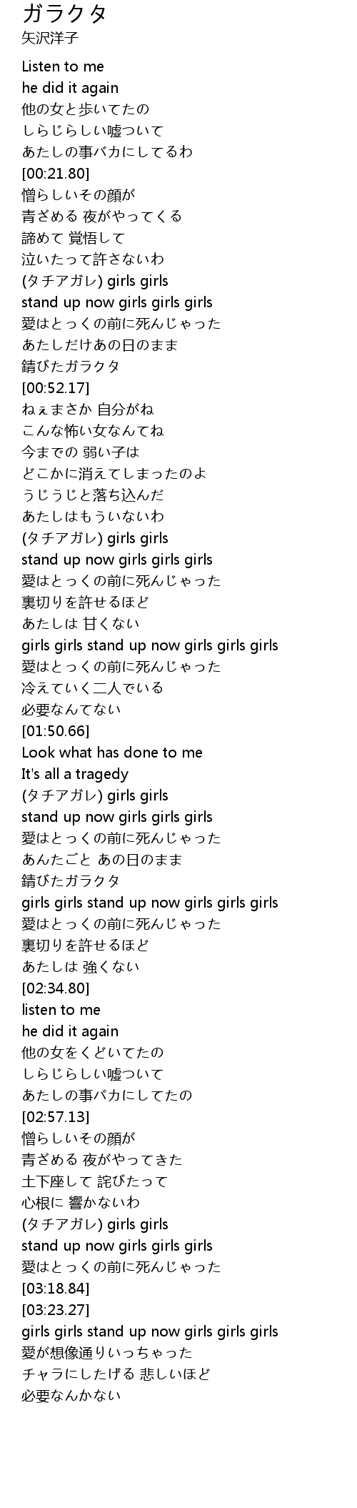 | [02:04.74] | (タチアガレ) girls girls |