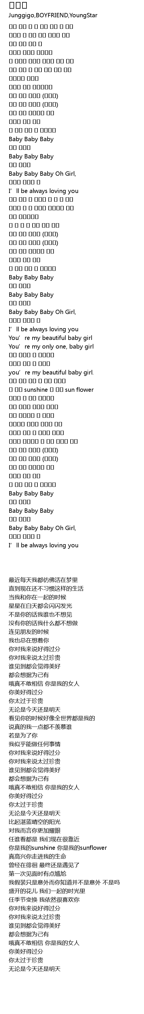 | [02:26.510] | 넌 나의 sunshine 난 너의 sun flower |