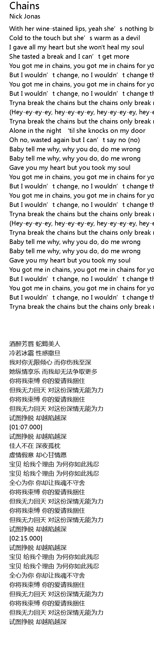 | [00:50.000] | You got me in chains, you got me in chains for your love |