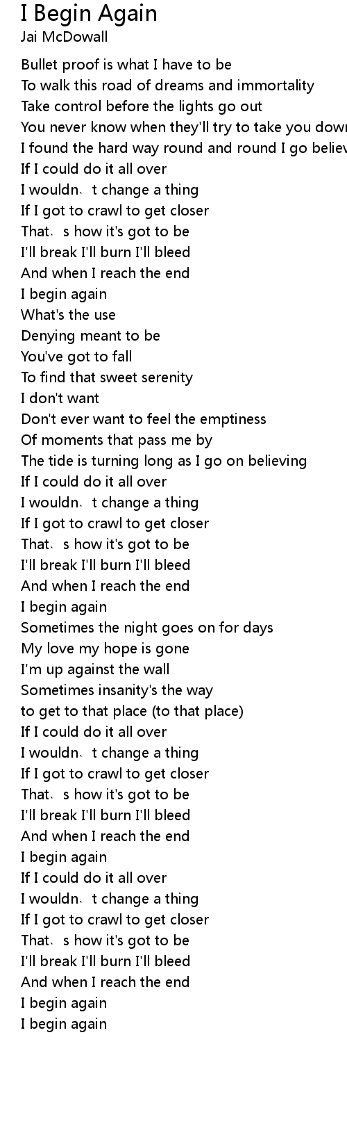 | Song | I Begin Again |