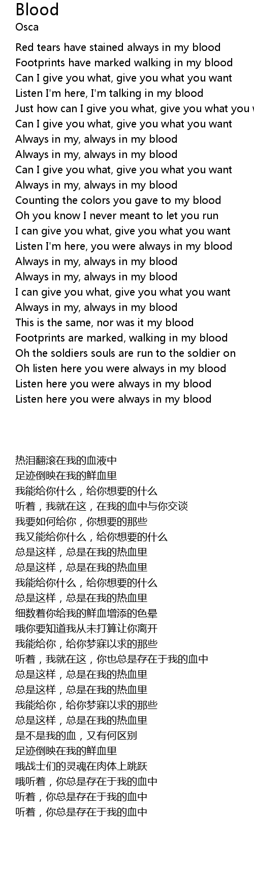 | [00:25.85] | Listen I'm here, I'm talking in my blood |