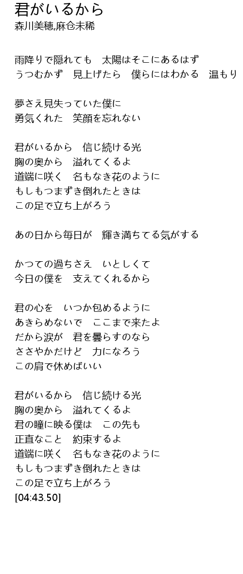 君がいるから 信じ続ける光 |