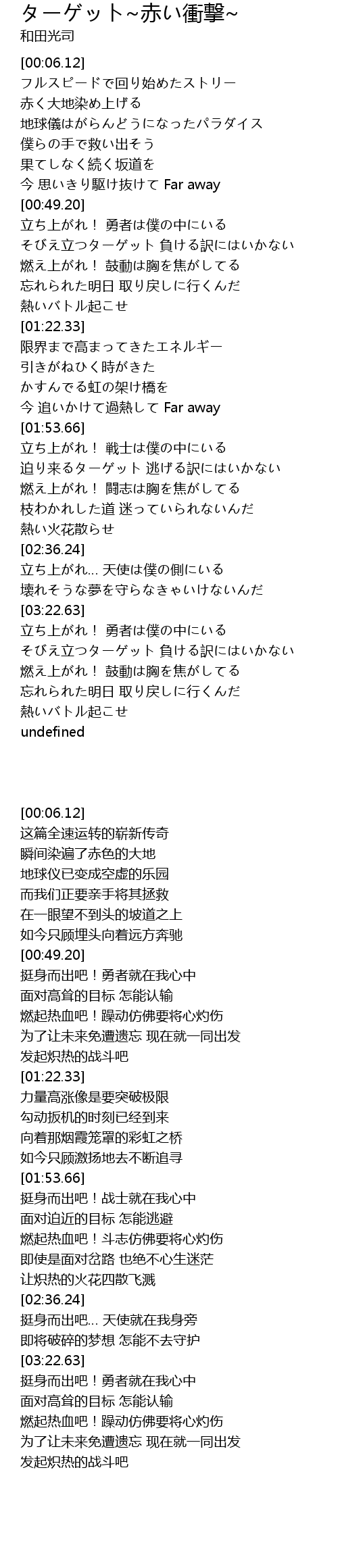 | [00:58.60] | そびえ立つターゲット 負ける訳にはいかない |