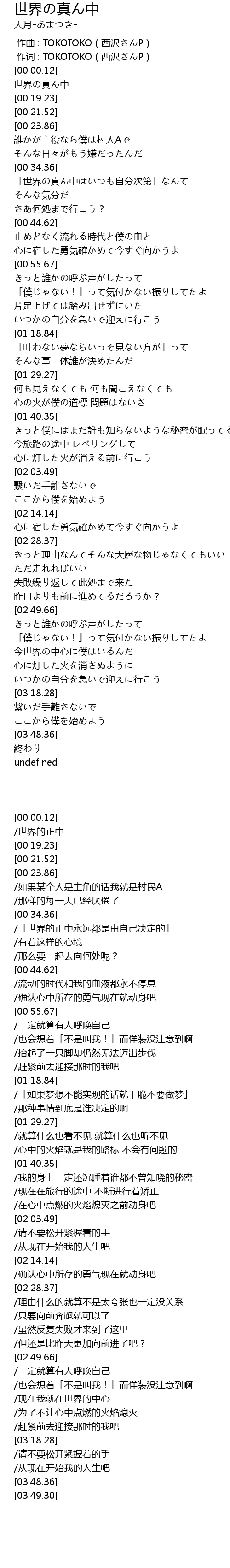 | [03:00.63] | 今世界の中心に僕はいるんだ |