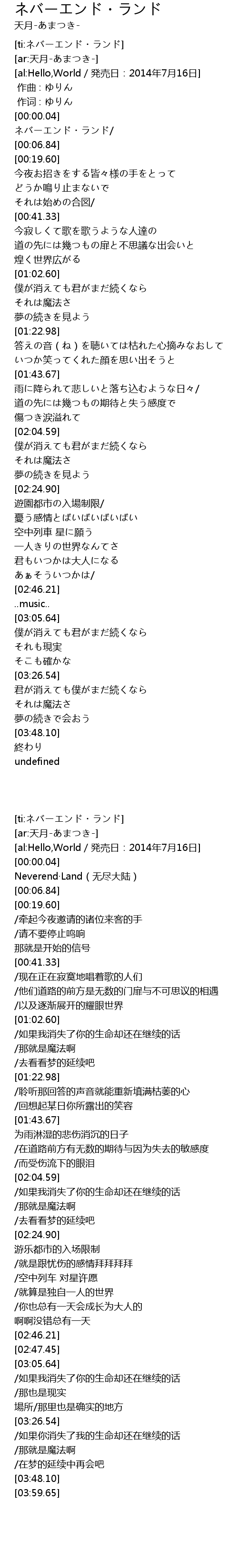 | [00:00.71] | ネバーエンド・ランド/ |