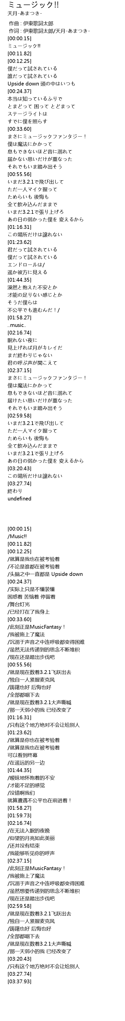 | [03:10.96] | いまだ3.2.1で張り上げろ |