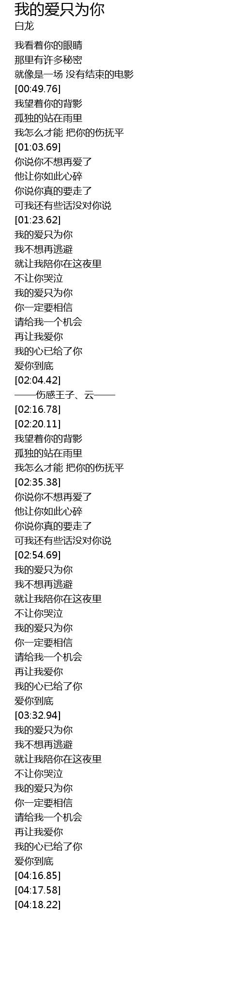| [03:51.42] | 我的爱只为你 |