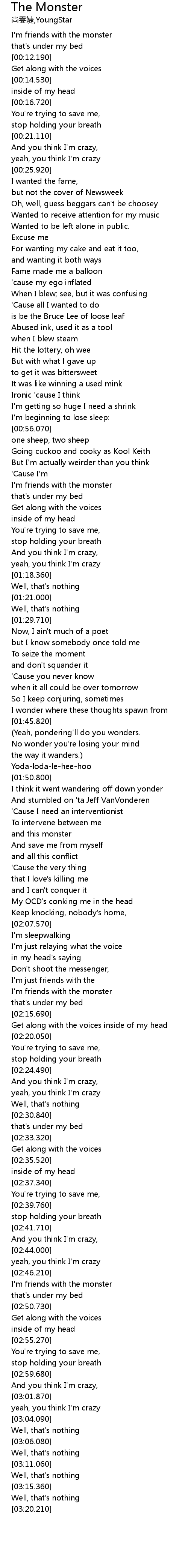 | [02:12.230] | I'm friends with the monster |