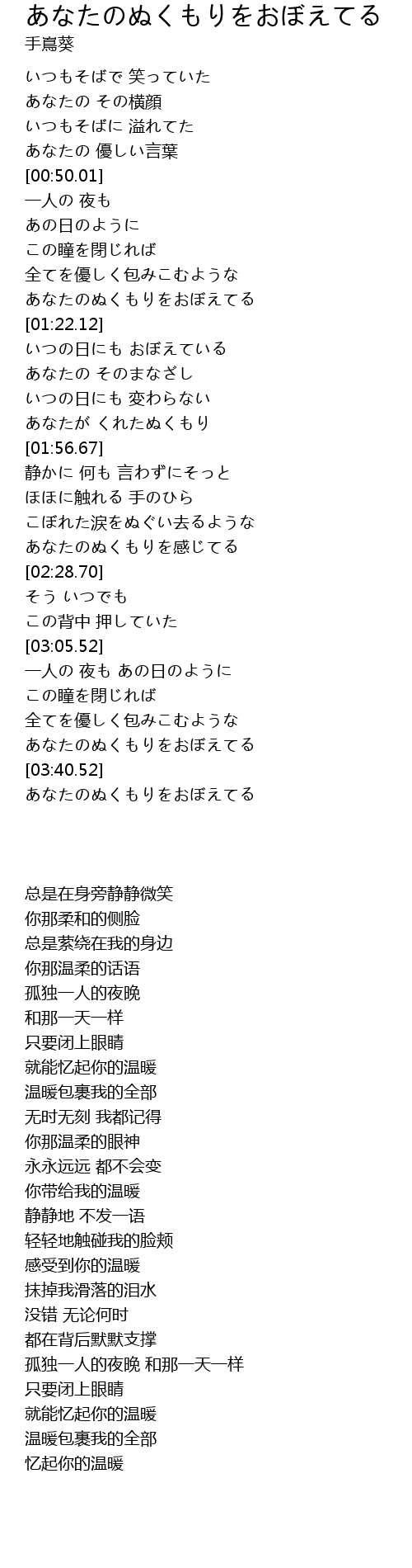 あなたのぬくもりをおぼえてる |