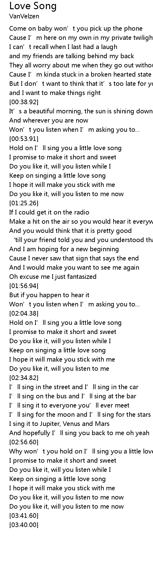 | [02:56.80] | Why won’t you hold on I’ll sing you a little love song |