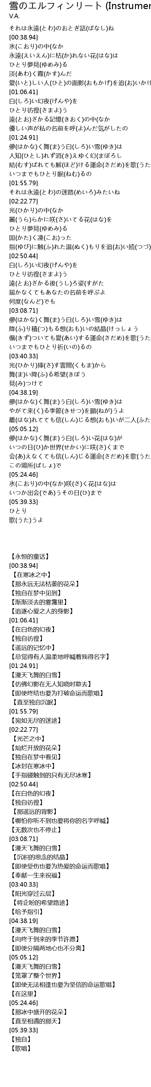 | [04:47.51] | 儚(はかな)く舞(ま)う白(しろ)い雪(ゆき)は |