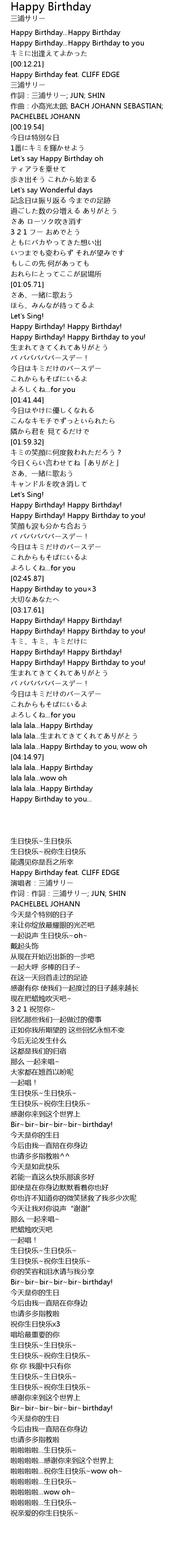 | [00:13.31] | Happy Birthday feat. CLIFF EDGE |
