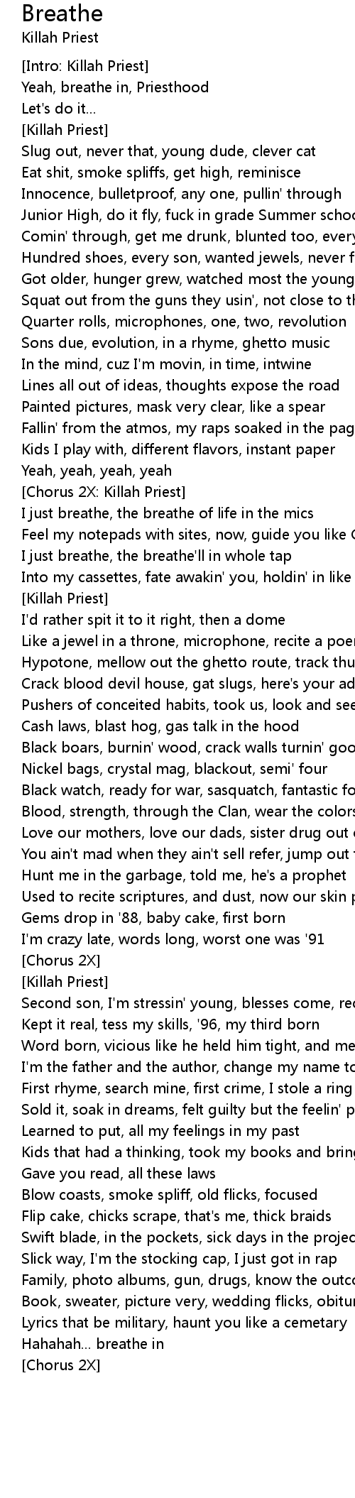 Yeah, breathe in, Priesthood |
