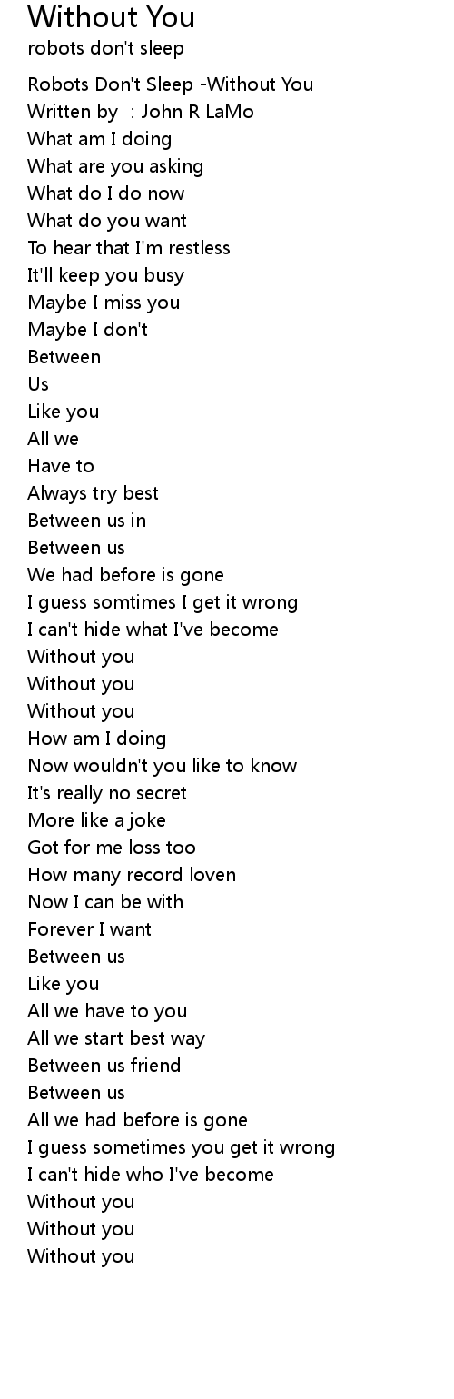 | [00:00.322] | Robots Don't Sleep -Without You |