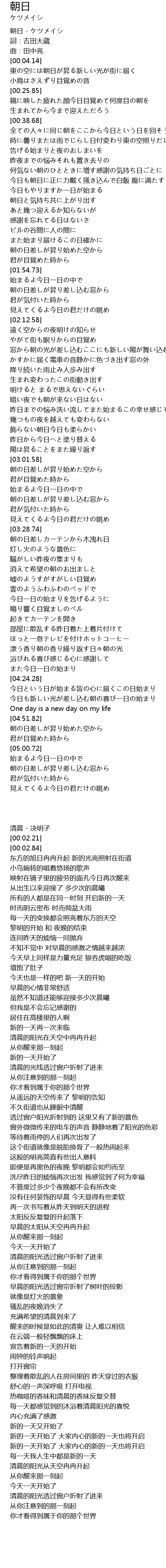 | [04:37.89] | 今日も新しい光が差し込む朝の喜び一日の始まり |