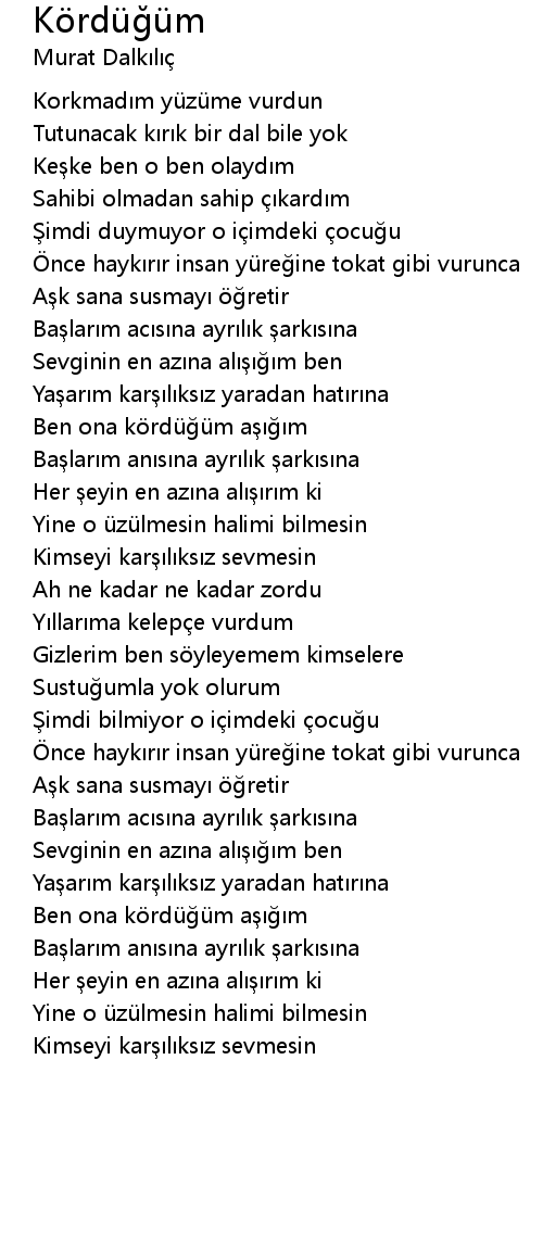 | Korkmadım yüzüme vurdun | |