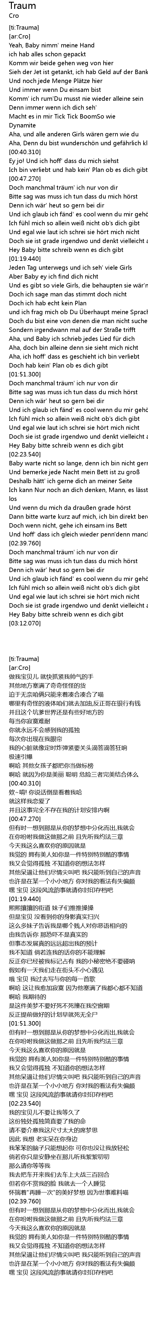 | [02:40.160] | Doch manchmal tr um' ich nur von dir |