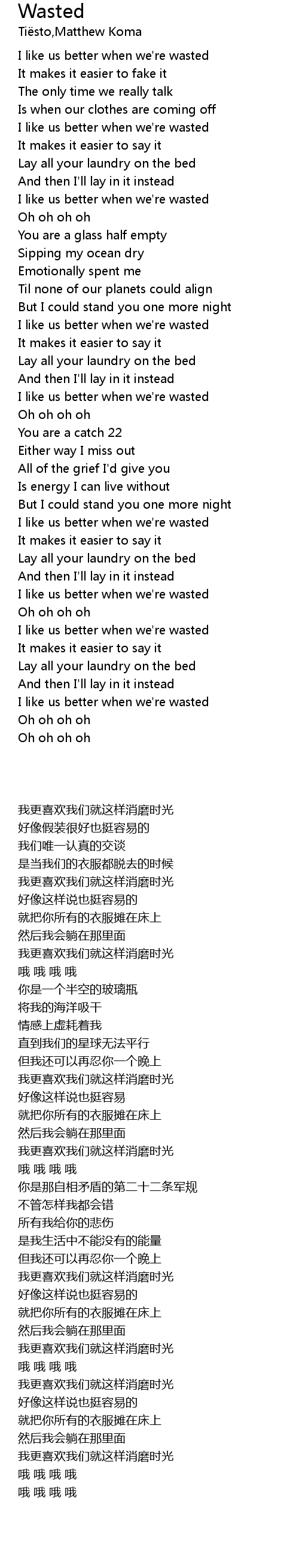 I like us better when we're wasted |