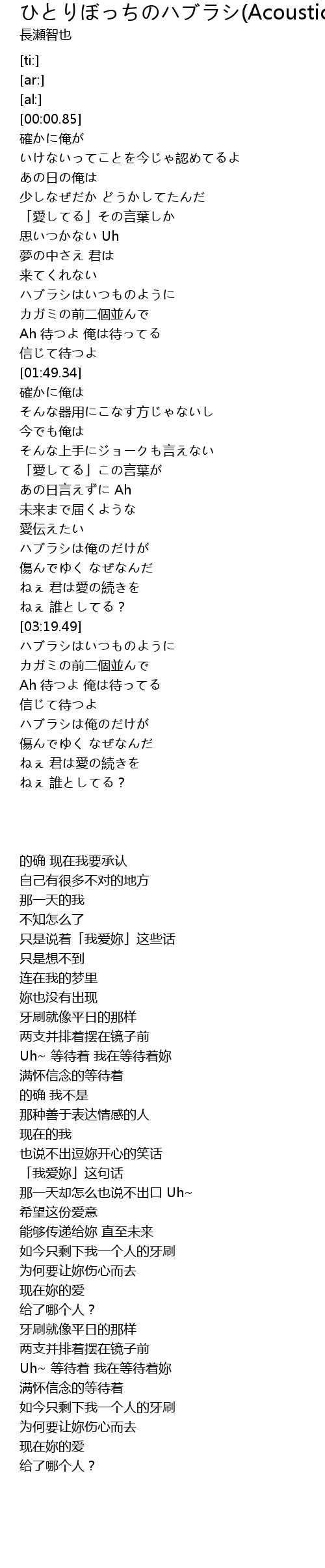 | [03:58.20] | ハブラシは俺のだけが |