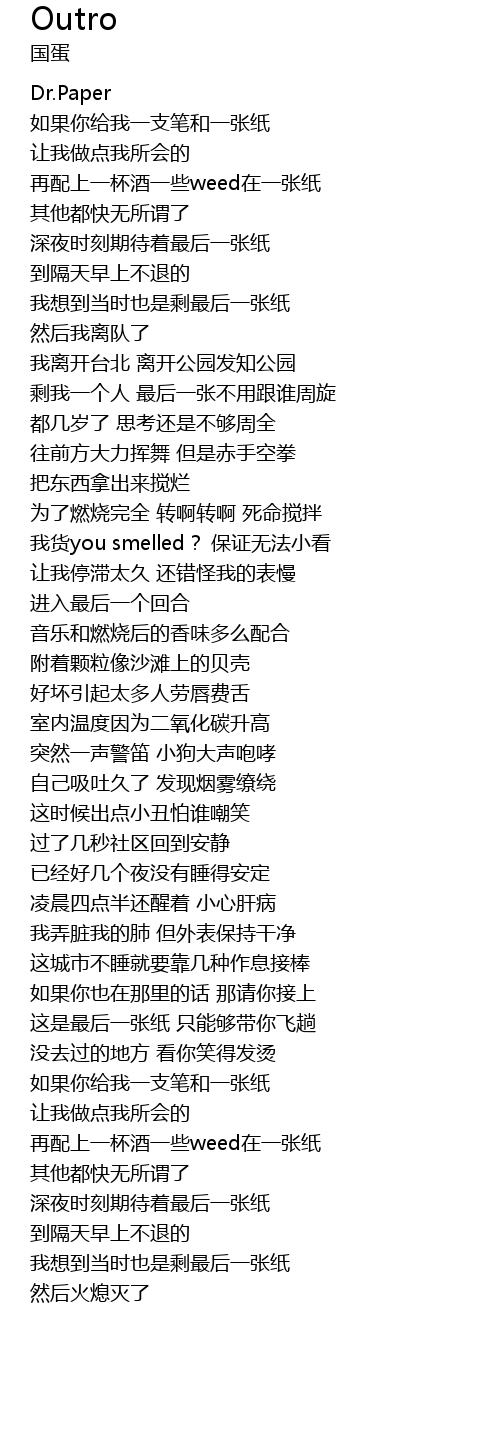 | [01:53.87] | 再配上一杯酒一些weed在一张纸 |