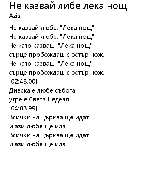 | [00:45.18] | Не казвай любе: "Лека нощ" |