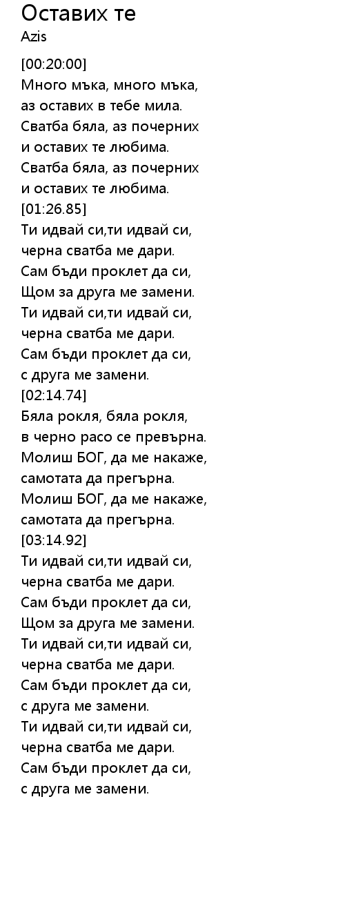 | [03:21.02] | черна сватба ме дари. |