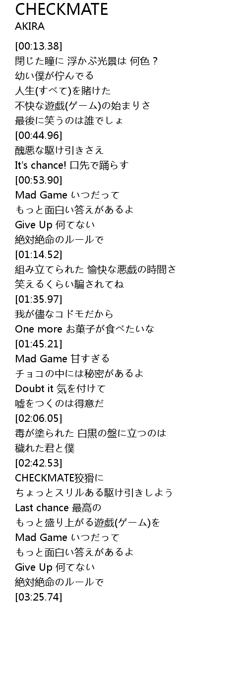 | [02:43.47] | CHECKMATE狡猾に |